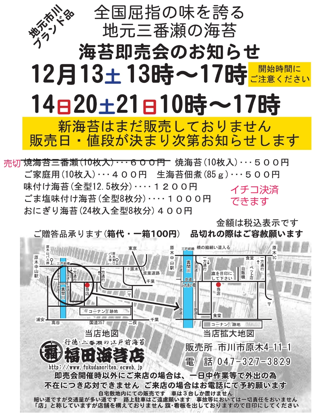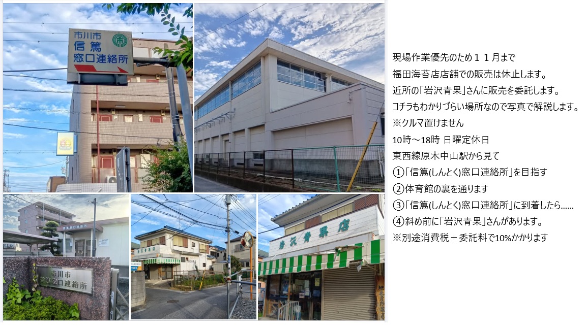 焼海苔のWEB販売分は完売しました。次回は新海苔として販売予定です(販売時期12月中旬以降の予定)