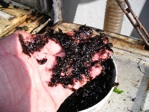 F採れたての海苔を海水と混ぜ合わせ攪拌します